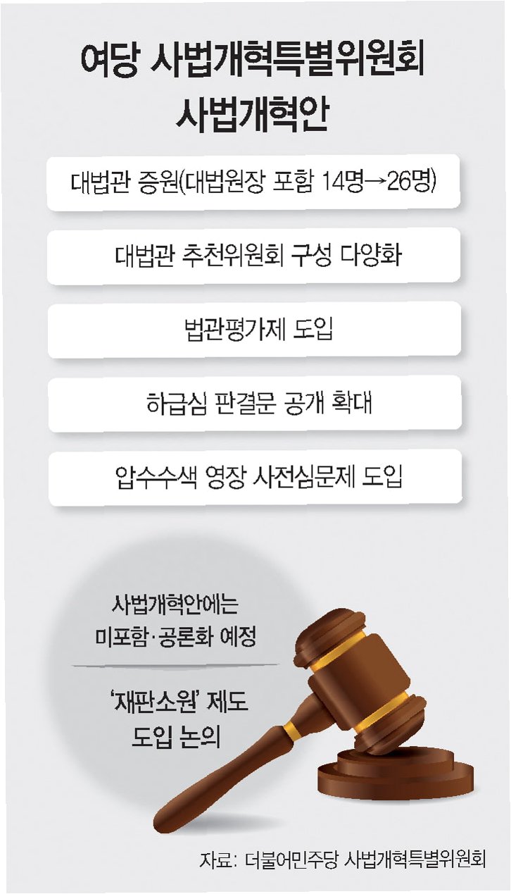 더불어민주당 사법개혁특별위원회가 발표한 사법개혁안은 현재 14명인 대법관 수를 26명으로 대폭 증원하는 내용을 담고 있습니다. 이는 상고심 적체를 해소하고, 국민의 재판받을 권리를 실질적으로 보장하기 위한 시도로 풀이됩니다. 이 개혁안은 단순한 숫자 늘리기를 넘어, 대법원 운영 방식에도 혁신적인 변화를 예고하고 있습니다.