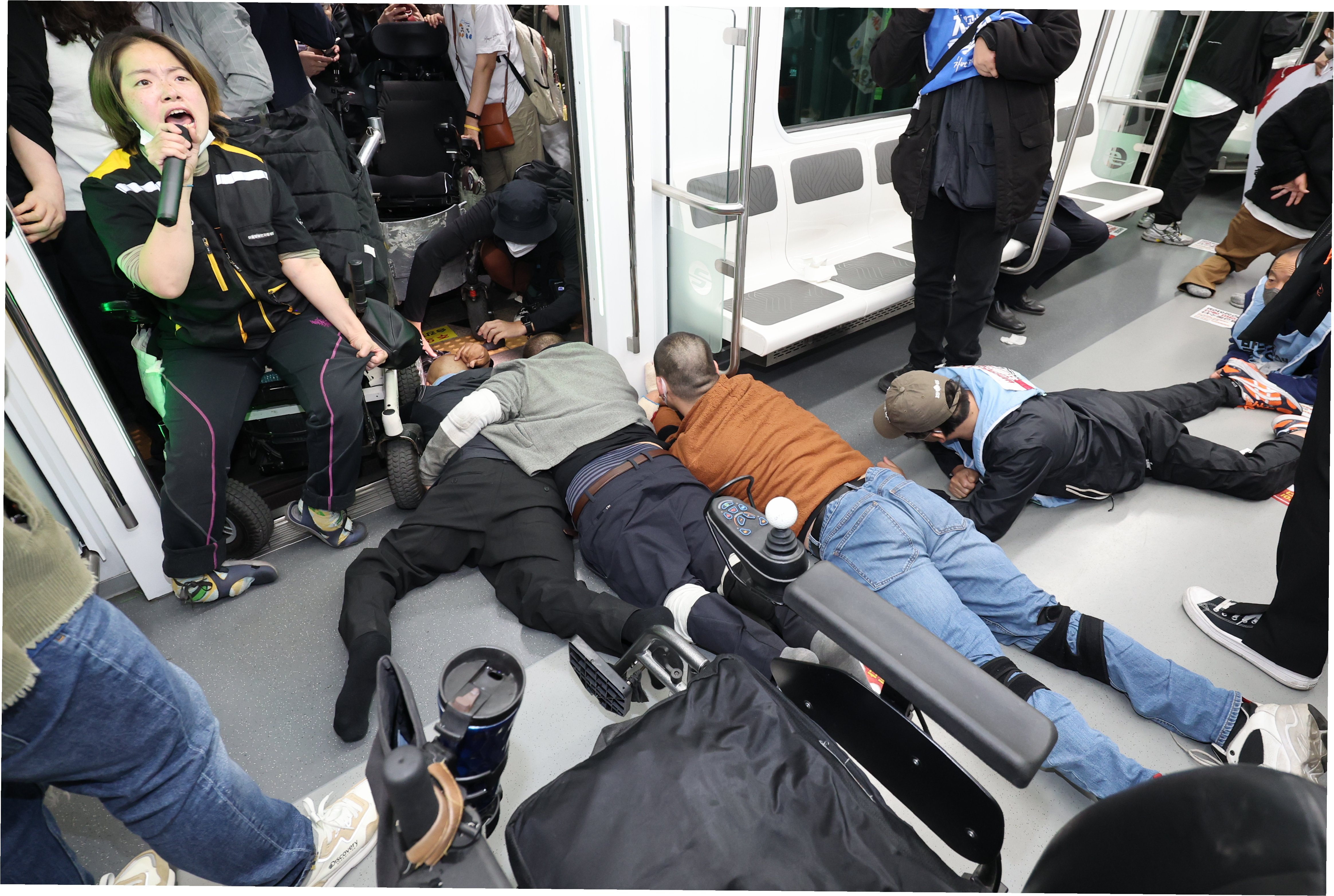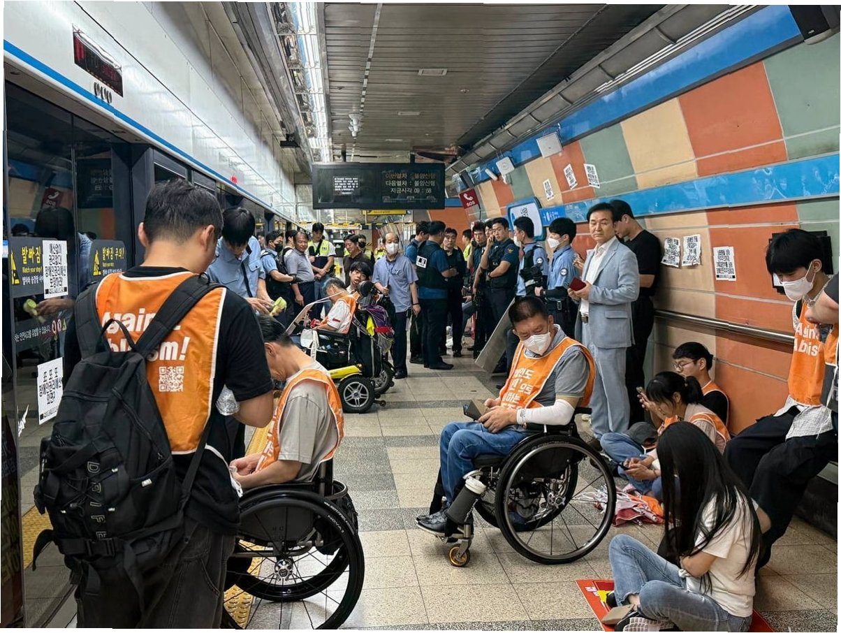 A.전국장애인차별철폐연대(전장연)의 시위로 인해, 안전상의 이유로 열차가 여의나루역을 무정차 통과했습니다.