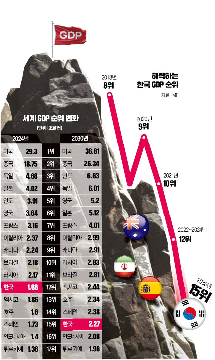 최근 국제통화기금(IMF)의 보고서에 따르면, 올해 우리나라의 달러 환산 명목 국내총생산(GDP)이 뒷걸음질할 것으로 예상됩니다. 이는 단순히 숫자의 변화를 넘어, 한국 경제가 직면한 현실을 적나라하게 보여주는 지표입니다. 지난해 1조 8,754억 달러였던 달러 GDP는 올해 1조 8,586억 달러로 감소할 것으로 추산되었으며, 이는 0.9% 감소한 수치입니다. 실질 경제 성장률이 0.9%에 그치는 상황에서 원·달러 환율 급등이 겹쳐, 달러 GDP는 더욱 위축될 것으로 보입니다. 이러한 현상은 단순히 경제 지표의 하락을 넘어, 한국 경제의 경쟁력 약화로 이어질 수 있다는 점에서 심각하게 받아들여야 합니다.