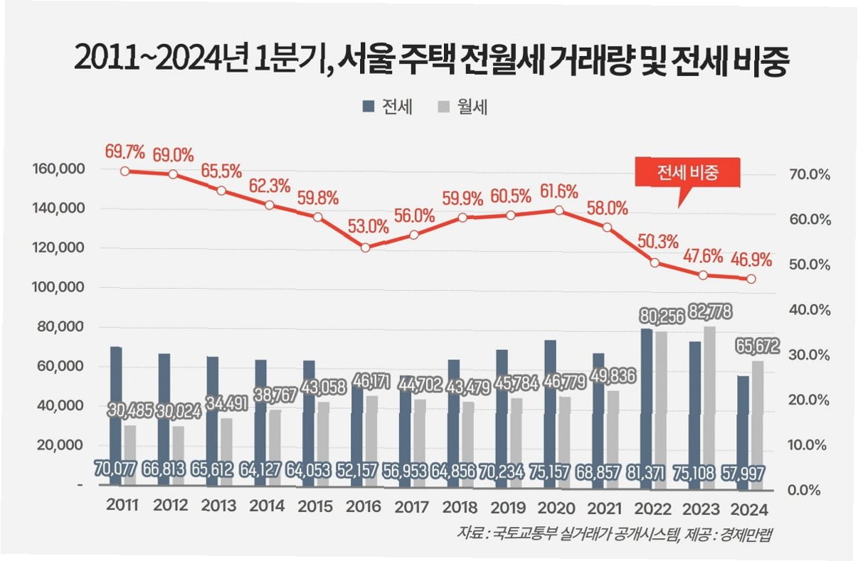 매물 부족 심화: 1년 새 20% 감소, '전세 품귀' 현상 현실화