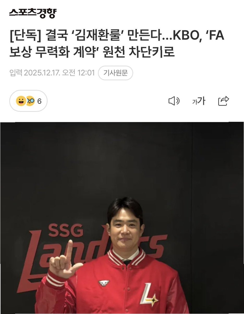 이에 SSG가 FA 보상을 두산에 지급하지 않고 최근 김재환을 영입했다. 정상적인 FA 절차를 밟았다면 김재환의 FA 등급인 B등급에 따른 보상이 SSG의 비용에 포함돼야 했다. 편법 계약으로 FA 보상 제도가 무력화된 것이다.