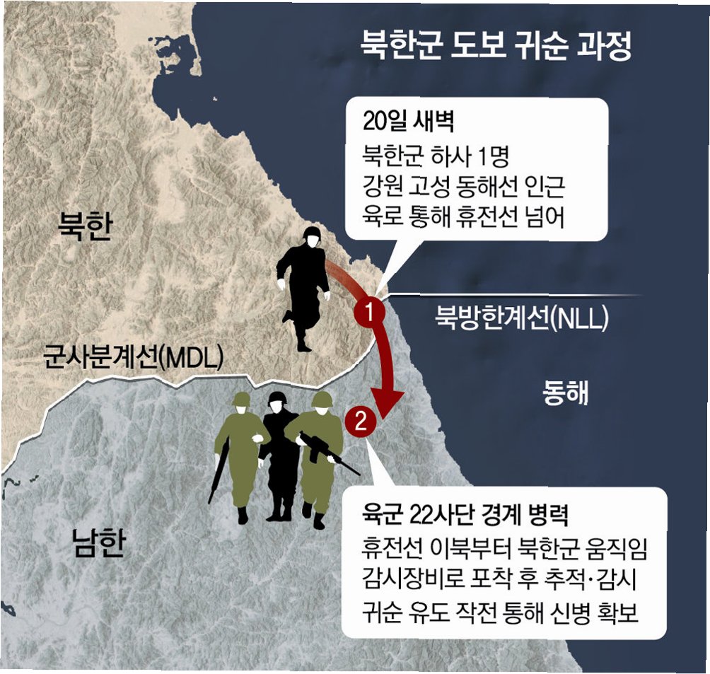 합동참모본부가 지난 9월 북한군의 군사분계선(MDL) 침범 판단 기준을 바꿔 전방 부대에 전파한 것으로 21일 확인됐다. 우리 군은 그간 한국군 군사 지도를 기준으로 북한군의 월선에 대응했지만, 합참은 새 지침에서 군사 지도와 1953년 유엔군 기준선을 비교해 더 남쪽을 MDL 기준으로 삼으라고 했다. MDL은 1953년 정전으로 설정된 휴전선으로, 당시 설치했던 표시물이 상당수 유실되면서 한국과 북한, 유엔군사령부의 기준선이 차이가 나는 경우가 있다. 북한이 올해 16차례 MDL을 월선하는 등 도발을 이어가고 있는데, 군이 북한에 유리한 방향으로 MDL을 해석해 준 것이라는 우려가 나온다.