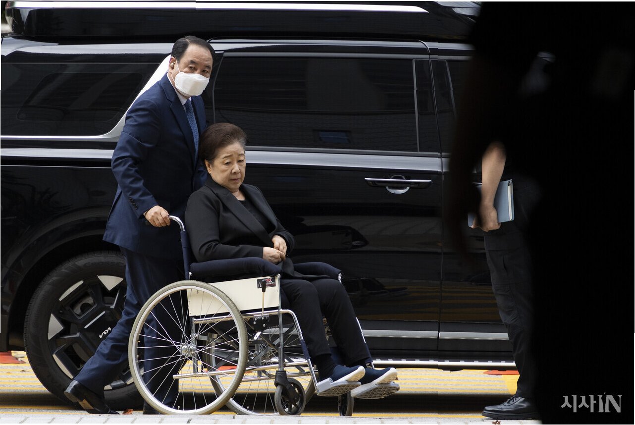 공개 석상에서 한학자 총재가 걸친 옷은 대개 화려한 색을 자랑했습니다. 그러나 휠체어에 앉아 법원으로 향하는 모습은 달랐습니다. 검은 옷을 입은 채 무기력한 표정으로 구속 전 피의자 심문에 참석한 모습은, 그동안의 화려함과는 극명한 대조를 이루었습니다. 이러한 모습은 그동안 통일교가 만들어온 이미지와는 전혀 다른 '참모습'을 드러내며, 대중에게 큰 충격을 안겨주었습니다.