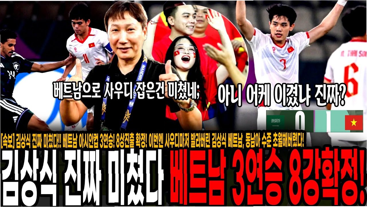 김상식 감독이 이끄는 베트남 U-23 대표팀이 2026 AFC U-23 아시안컵 조별리그에서 대이변을 연출했습니다개최국이자 강력한 우승 후보였던 사우디아라비아를 1-0으로 격파하며 A조 1위로 8강 진출을 확정 지었습니다베트남은 요르단, 키르기스스탄과의 경기에서도 승리하며 조별리그 3전 전승이라는 놀라운 기록을 세웠습니다. 이로써 김상식 감독은 베트남 축구에 새로운 역사를 써내려 가고 있습니다.