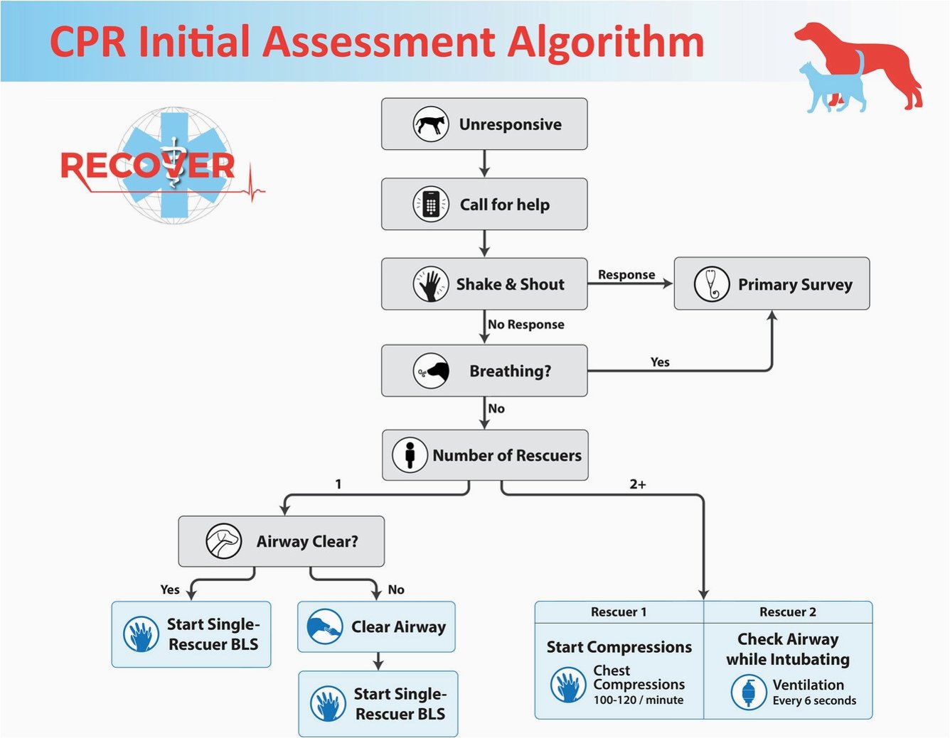 물에 빠져 심장정지 환자가 발생한 경우, 인공호흡을 포함한 표준 심폐소생술을 시행하도록 권고합니다. 일반인 목격자가 인공호흡을 꺼리거나 교육받지 못한 상황이라면 가슴압박소생술만 시행해도 됩니다. 하지만 응급의료종사자나 교육을 받은 일차반응자는 인공호흡부터 시작해야 합니다.