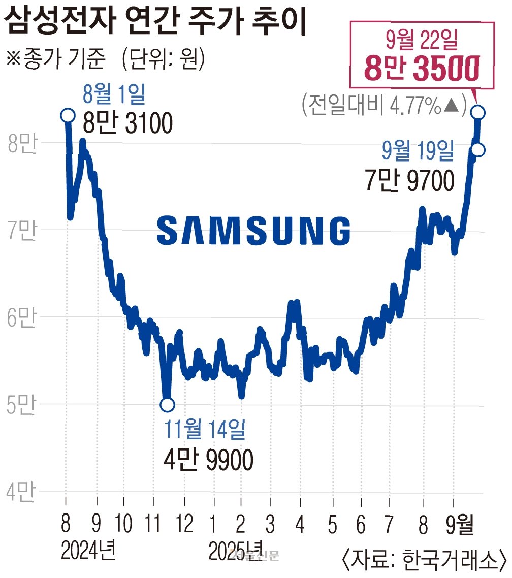 시장조사업체 카운터포인트리서치는 삼성전자가 3분기 전 세계 메모리 시장 1위를 탈환했다고 전했습니다. 삼성전자는 이 기간 194억달러 매출을 올리면서 175조원을 기록한 SK하이닉스를 제치고 선두를 차지했습니다. 향후 사업에도 청신호가 켜진 상태. 삼성전자는 지난 7월 테슬라와 23조원 규모의 역대 최대 파운드리(반도체 위탁생산) 공급계약을 체결했습니다. 애플과는 아이폰용 이미지센서로 추정되는 칩 공급계약을 맺었습니다. 오픈AI가 추진하는 약 700조원대 AI 프로젝트 '스타게이트'에도 힘을 보탭니다.