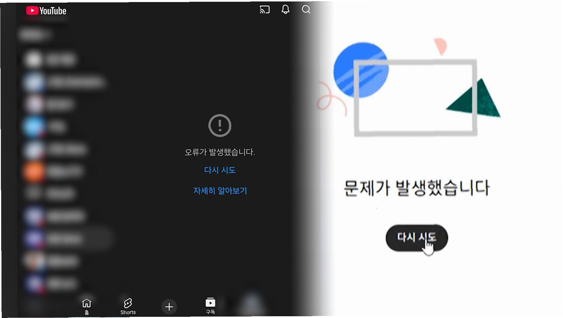 A.18일 오전부터 유튜브 모바일 앱과 PC 웹 서비스에서 동시다발적으로 접속 장애가 발생했습니다.