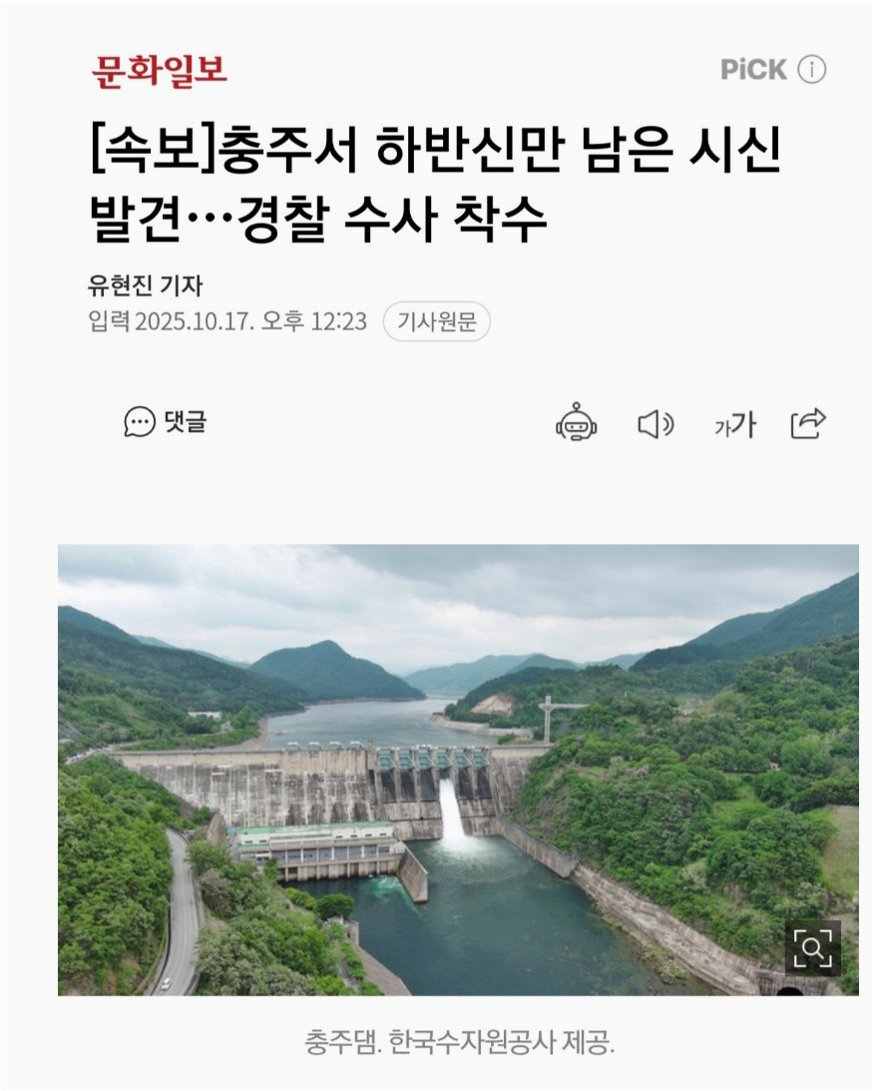 충주댐, 하반신 시신 발견… 충격적인 사건의 시작