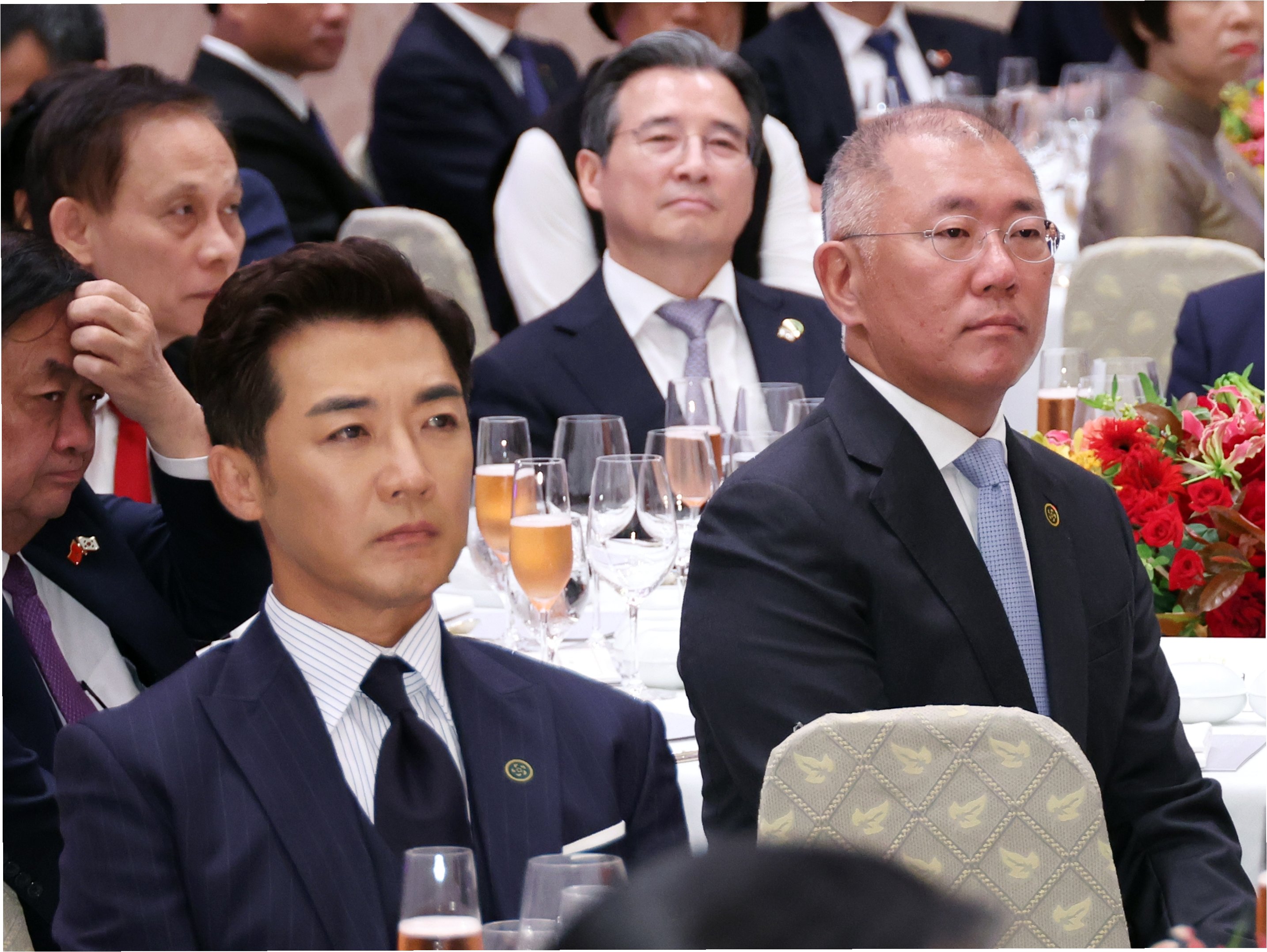 안재욱이 참석한 행사는 지난해 8월 11일, 이재명 대통령이 방한한 또 럼 베트남 공산당 서기장을 청와대 영빈관으로 초청해 연 국빈 만찬입니다. 이 자리에는 최태원 SK그룹 회장, 정의선 현대차그룹 회장, 구광모 LG그룹 회장 등 국내 주요 그룹 총수들이 대거 참석했습니다. 당시 안재욱은 이 대통령과 같은 테이블에 앉아 진지한 태도로 행사에 임해 많은 이들의 시선을 사로잡았습니다.