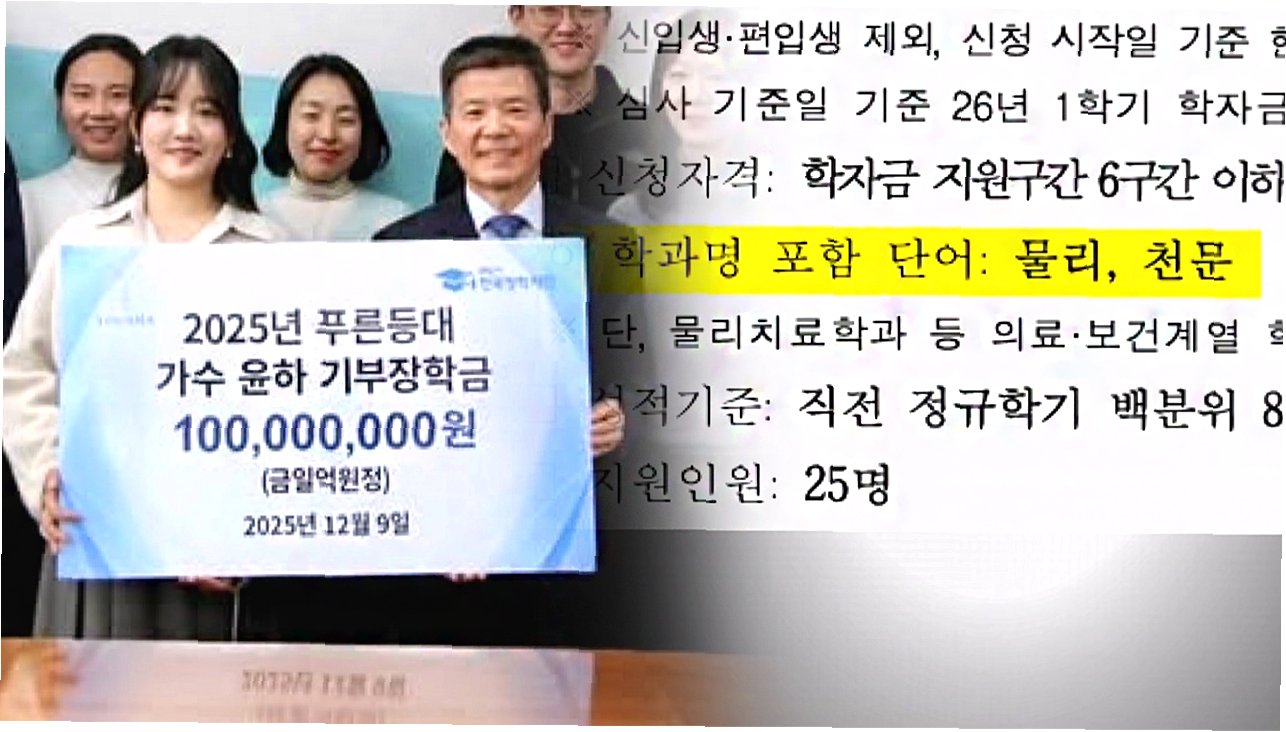 가수 윤하의 기부로 신설된 장학금이 물리학 및 천문학 전공 학생들을 지원합니다. 1인당 250만원씩 총 25명에게 지급되며, 저소득층 우수 대학생들이 학업에 전념할 수 있도록 돕습니다. 윤하는 앞으로도 지속적인 지원을 통해 과학 인재 양성에 힘쓸 예정입니다.