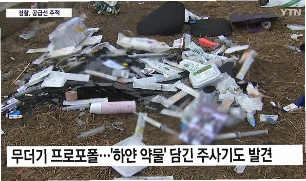 A.포르쉐 안에서 프로포폴 주사제, 진정 마취용 약제, 일회용 주사기 등이 무더기로 발견되었습니다.