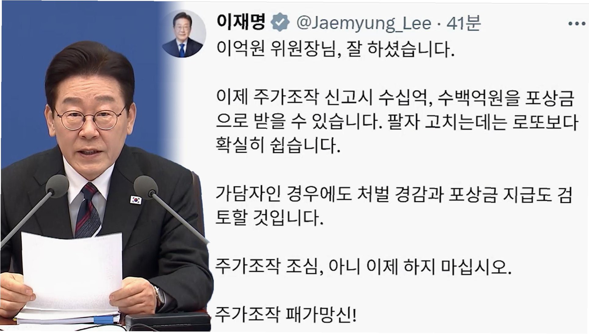 주가 조작 신고 포상금 상한이 폐지되어, 이제 부당 이득의 최대 30%까지 받을 수 있습니다. 이재명 대통령은 이를 적극 홍보하며 '좋은 나라 만들면서 부자 되는 방법'으로 제시했습니다. 수십억, 수백억 원의 포상금으로 '팔자 고치는' 기회를 놓치지 마세요. 불법 행위는 '패가망신'으로 이어질 뿐입니다.