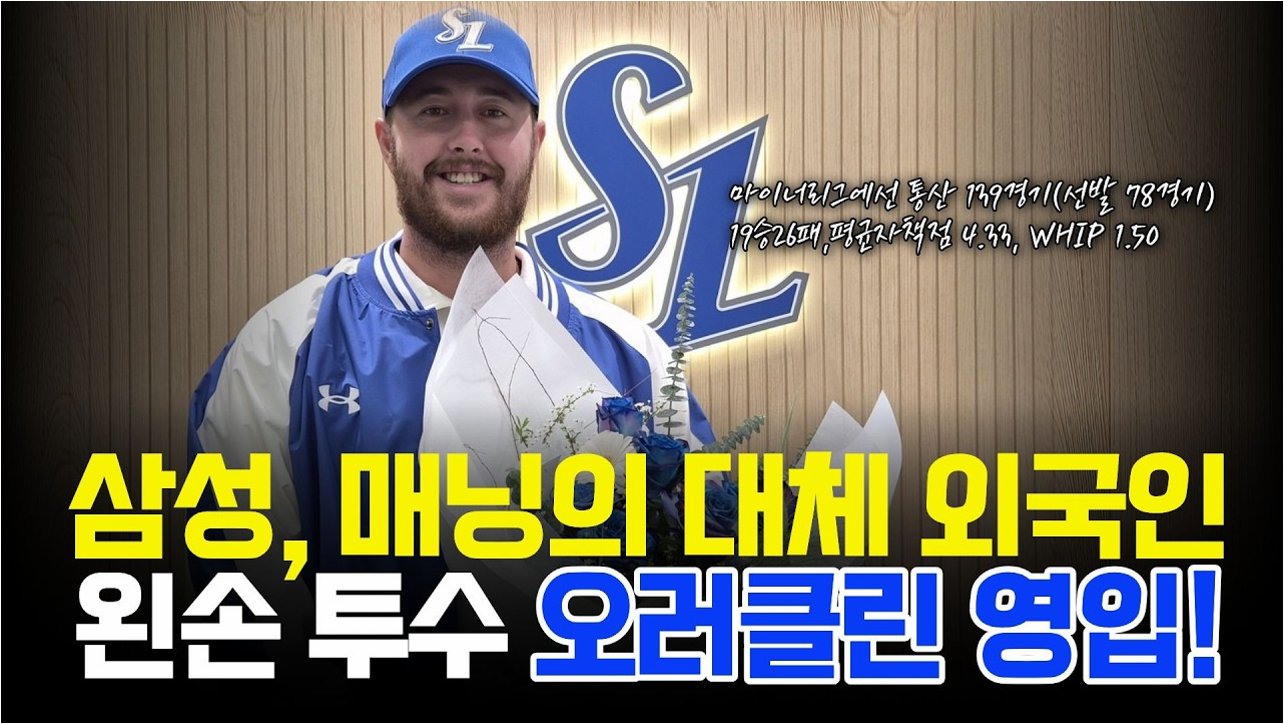 삼성 라이온즈가 시즌 아웃된 외국인 투수 맷 매닝의 대체 선수로 좌완 투수 잭 오러클린을 영입했습니다. 6주간 총액 5만 달러(약 7400만원)의 단기 계약 조건으로, 오러클린은 자신의 기량을 증명하겠다는 의지를 보였습니다. 삼성 관계자는 즉시 영입 가능성과 실전 감각 유지에 무게를 두고 오러클린을 선택했으며, 그의 다양한 구종이 선발진의 한 축을 담당할 것으로 기대하고 있습니다.