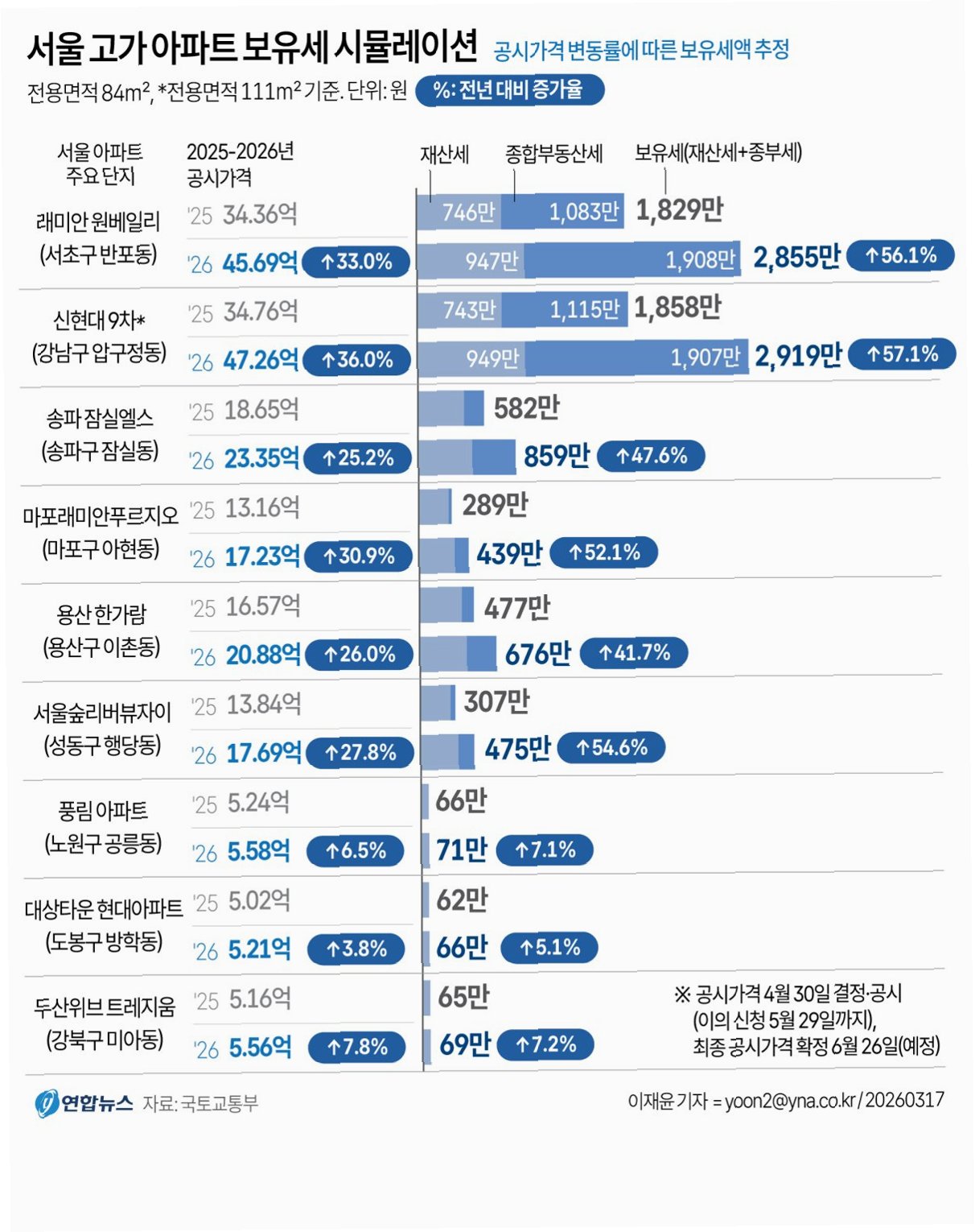 강남권 아파트, 보유세 1000만원 이상 증가 사례 속출