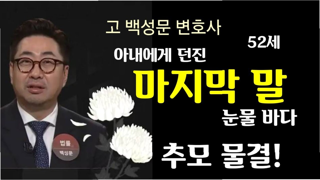 故 백성문 변호사는 방송인으로서, 그리고 한 남편으로서 많은 이들에게 깊은 감동과 사랑을 남겼습니다. 그의 따뜻한 미소와 헌신적인 사랑은 영원히 기억될 것이며, 그의 부재는 많은 이들에게 잊을 수 없는 슬픔으로 남을 것입니다.