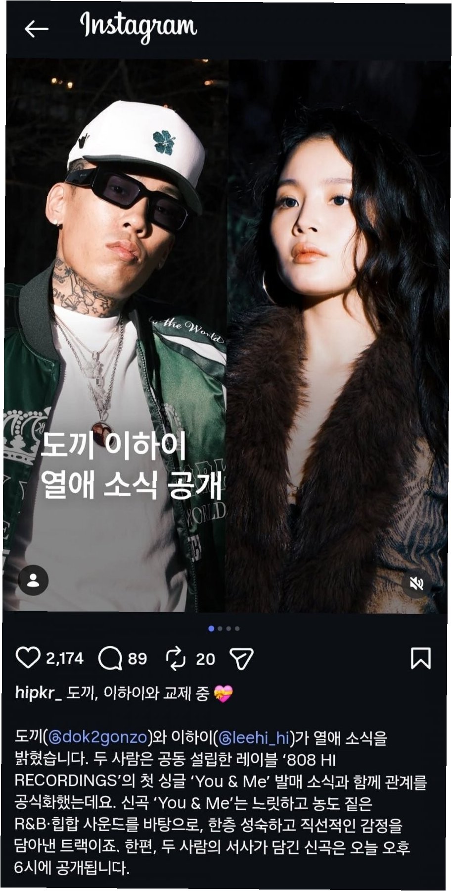 래퍼 도끼와 가수 이하이의 열애설이 불거지며 구체적인 연애 시기가 주목받고 있습니다. 웹 매거진 에이치아이피는 두 사람이 공동 설립한 레이블 '808 HI RECORDINGS'의 첫 싱글 'You & Me' 발매와 함께 관계를 공식화했다고 보도했습니다. 이 곡에는 두 사람의 관계와 서사가 담긴 가사가 포함된 것으로 알려졌습니다.
