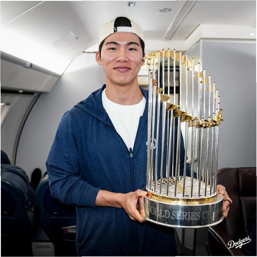 LA 다저스 김혜성이 2025 MLB 월드시리즈 우승 트로피를 들고 포즈를 취하고 있다한국인 메이저리거 야수 역대 최초로 월드시리즈 우승반지를 차지한 김혜성(26·LA 다저스). 마지막 순간 그라운드를 밟을 수 있었던 건, 베테랑 내야수의 판단이 있었기 때문이었다.