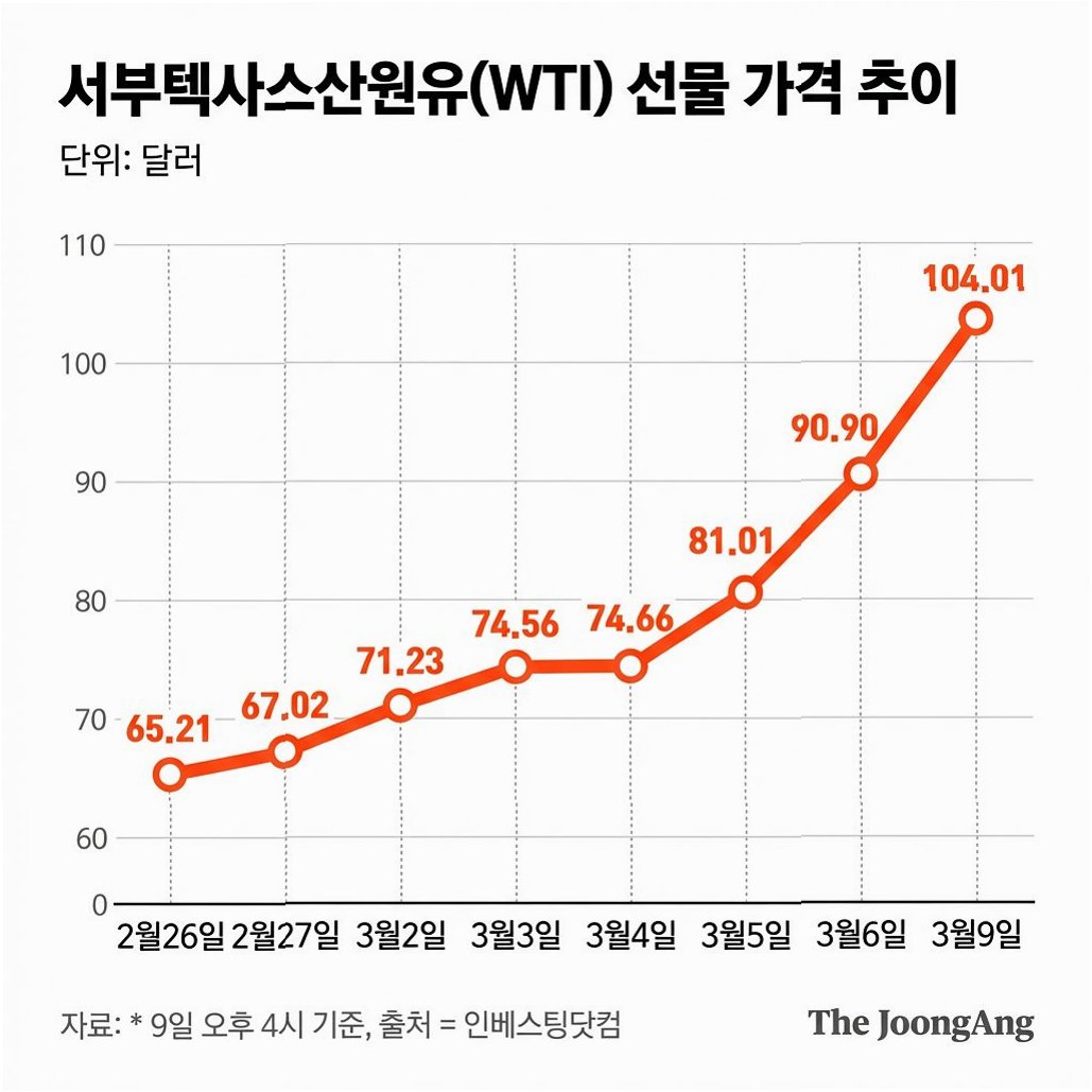 중동 지역의 군사적 긴장 고조와 후티 반군의 참전, 그리고 트럼프 대통령의 강경 발언이 복합적으로 작용하며 WTI 유가가 100달러를 돌파했습니다. 홍해 항로 봉쇄 위협과 지정학적 리스크는 당분간 유가 변동성을 확대시킬 것으로 예상됩니다.