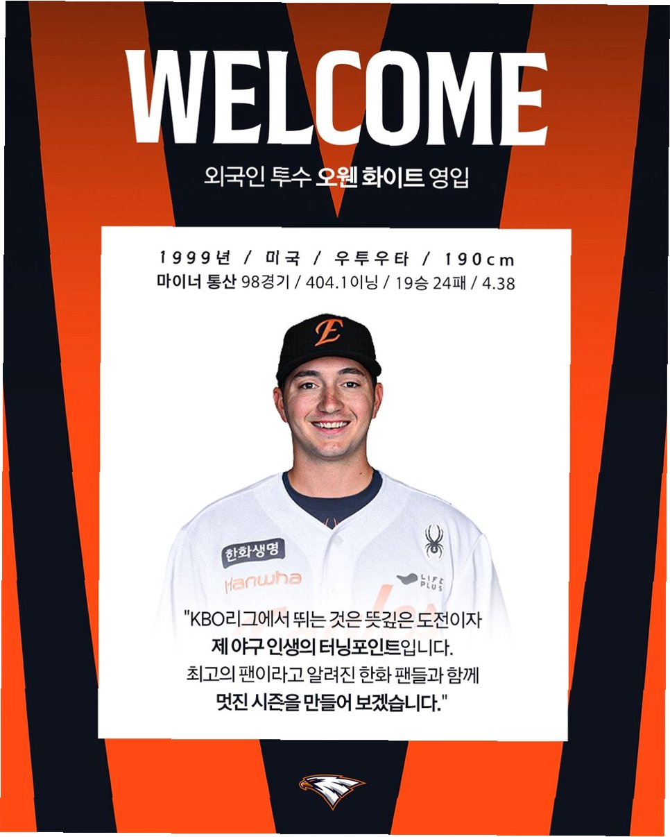 한화 이글스, 외국인 투수 오웬 화이트 부상으로 초비상