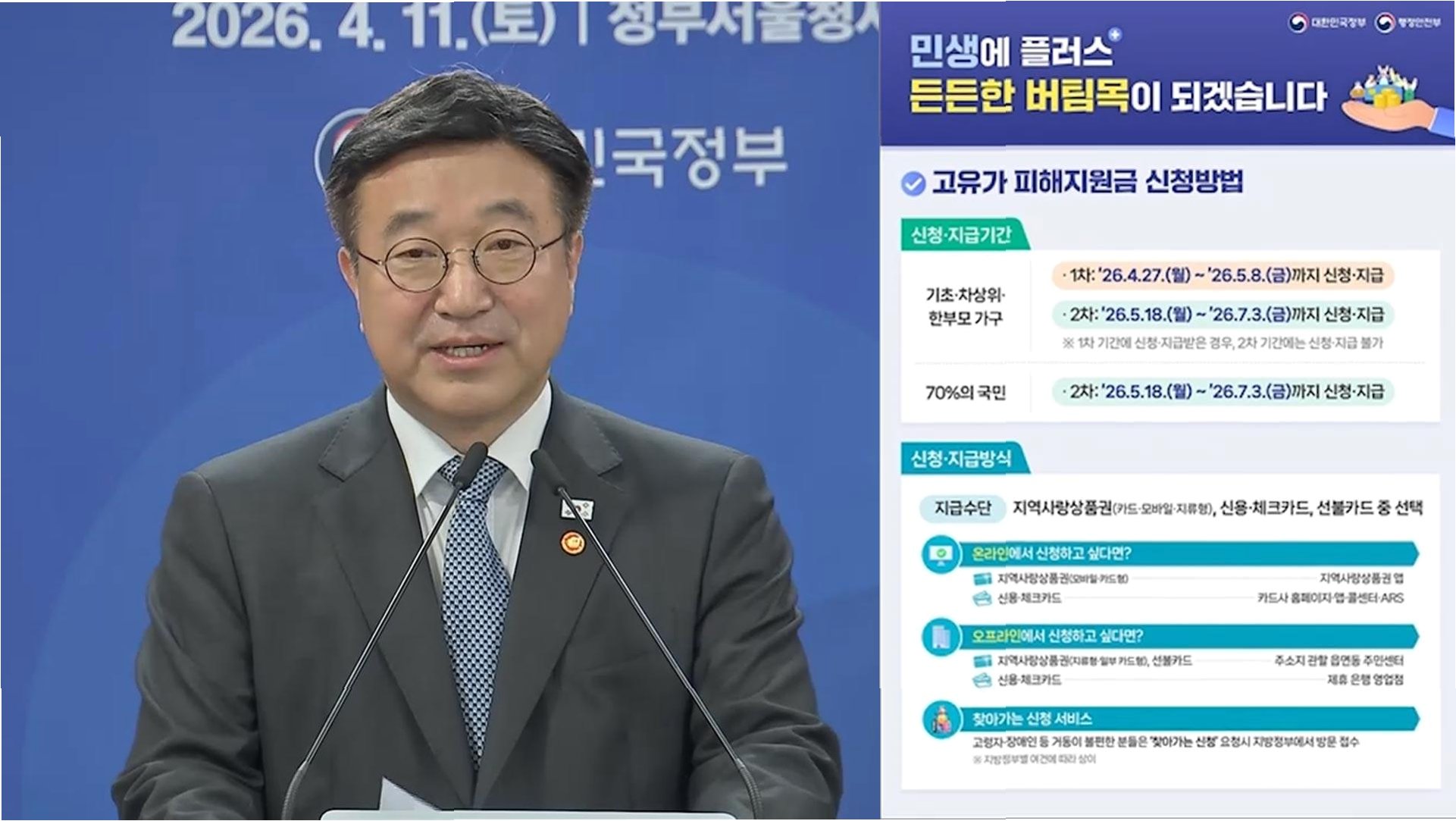 이란 전쟁발 고유가·고물가 시대, 정부가 소득 하위 70% 국민을 대상으로 최대 60만 원의 고유가 피해지원금을 지급합니다. 취약계층은 이달 27일부터, 일반 국민은 5월 18일부터 신청 가능하며, 8월 31일까지 소상공인 업체에서 사용해야 합니다. 온라인 및 오프라인 신청 모두 가능하며, 신속한 지급으로 민생 경제 안정에 기여할 것으로 기대됩니다.