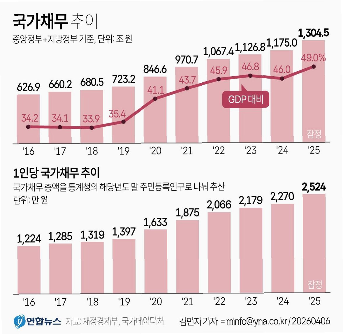 최근 발표된 정부 데이터에 따르면 대한민국의 국가 부채는 예상보다 빠르게 증가하며 2030년까지 국내총생산(GDP) 대비 부채 비율이 60%에 달할 것으로 보입니다. 기획재정부의 국가결산 보고서에 따르면, 2025년 말 기준 국가 부채는 1,304조 5천억 원으로 전년 대비 129조 4천억 원 증가했습니다. 이는 1997년 관련 통계 작성 이래 최대 연간 증가폭입니다. 2025년 국가 부채 비율은 49%로 정부 초기 전망치인 49.1%보다 소폭 낮았지만, 전년 대비 3%p 상승하며 2020년 이후 가장 가파른 상승세를 기록했습니다.