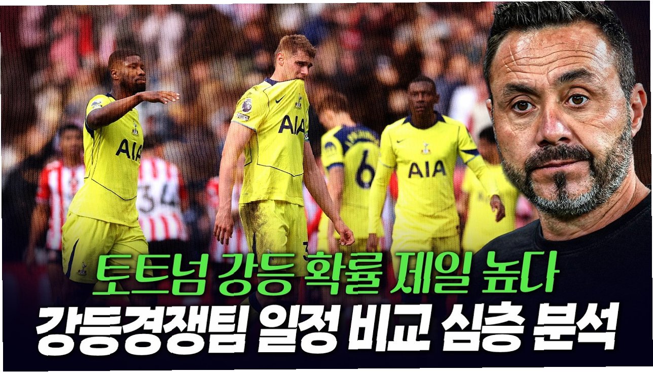 지난 시즌 우승컵을 들어 올리며 승승장구하던 토트넘 홋스퍼 FC가 이제는 2부 리그 강등이라는 최악의 상황에 직면했습니다. 만일 강등이 확정된다면, 구단은 뼈를 깎는 재정적 손실을 감수해야 할 것으로 보입니다. 미국 매체 '스포츠 일러스트레이티드'는 토트넘이 재정적 파국까지 단 5경기만을 남겨두고 있다고 보도하며, 잉글리시풋볼리그(EFL) 챔피언십(2부 리그) 강등 시 닥쳐올 암울한 상황을 집중 조명했습니다. 현재 토트넘은 프리미어리그(PL)에서 18위에 머물러 있으며, 강등권인 17위와 승점 2점 차이로 아슬아슬한 상황입니다. 최근 15경기 연속 무승의 늪에 빠져 있어 통계 매체 '옵타'의 슈퍼컴퓨터 역시 토트넘의 강등 확률을 56.93%로 예측했습니다.