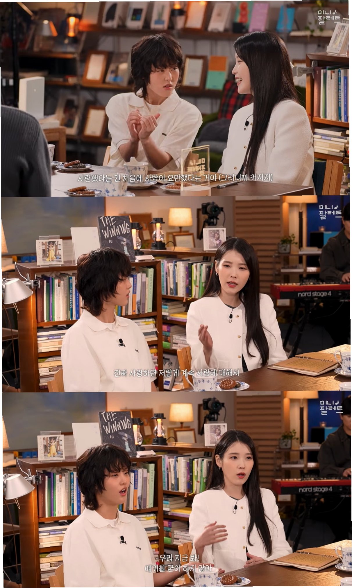 영상에서 게스트 변우석은 동료 배우 유수빈과의 촬영 비하인드 스토리를 전하며, 서로 더 친해지고 애정이 커져서 오히려 연기에 대한 부담감을 느꼈던 경험을 공유했다. 이에 대해 아이유는 '그러니까. 그리고 진짜 사랑하면 굳이 저렇게 사랑에 대해서 계속 얘기를 하지 않는다'고 덧붙이며 자신의 연애관을 다시 한번 피력했다. 반면 변우석은 '표현하는 게 참 좋다. 사람은 표현을 해야 한다'며 사랑한다는 표현의 중요성을 강조했고, 유수빈과의 다정한 대화로 훈훈함을 더했다. 이는 연기 속에서 자연스럽게 싹튼 동료애와 애정이 어떻게 표현되는지에 대한 다양한 시각을 보여준다.