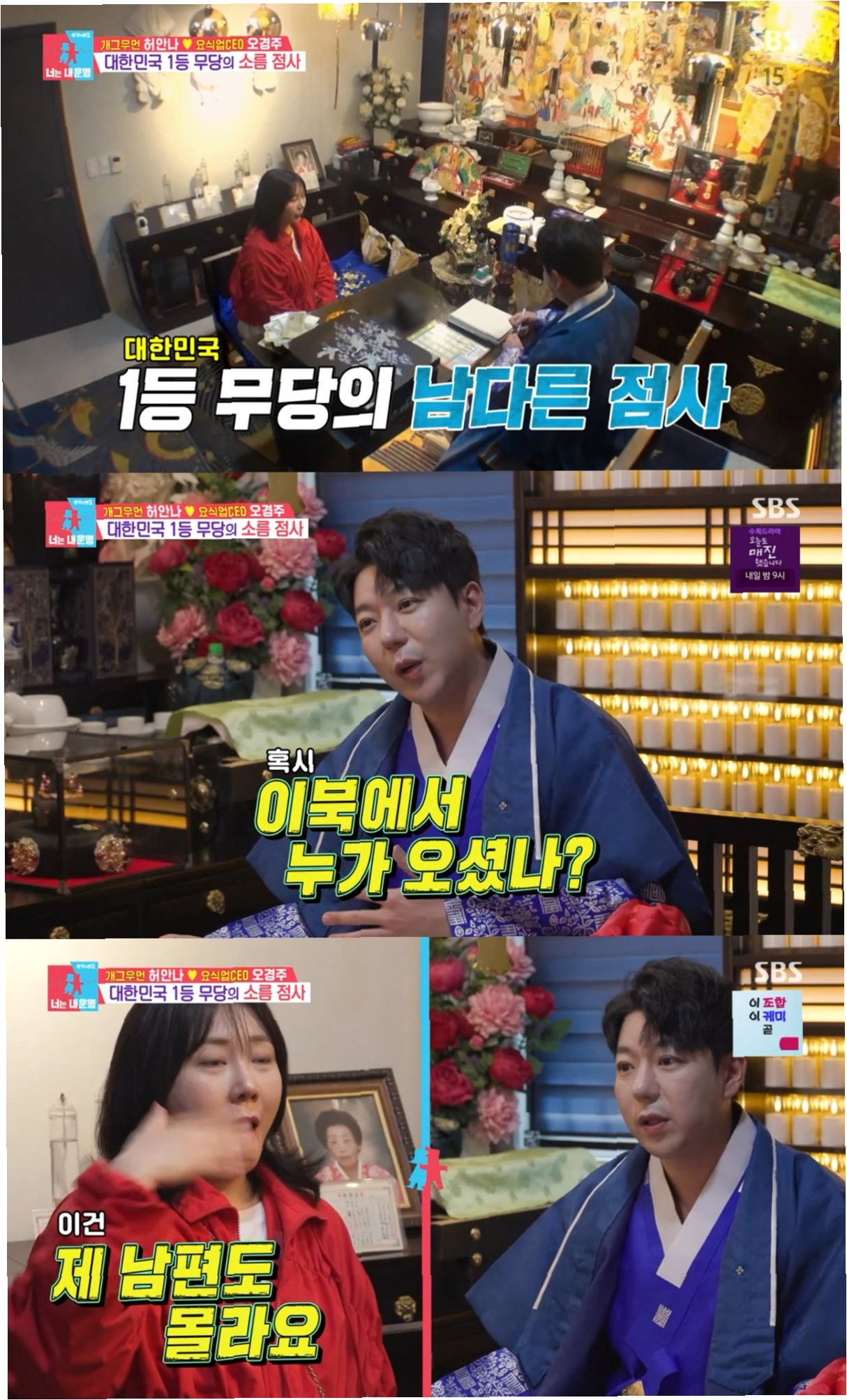 개그우먼 허안나가 세상을 떠난 친언니를 떠올리며 눈물을 쏟았습니다. SBS 예능프로그램 '동상이몽 시즌2-너는 내 운명'에 출연한 허안나, 오경주 부부는 무속인 윤대만을 찾았습니다. 윤대만은 허안나의 집안 내력과 함께 그녀가 겪었던 어려움을 정확히 짚어내며 놀라움을 안겼습니다. 특히, 3~4년 전부터 닥친 삼재로 인해 많은 변화와 어려움이 있었음을 언급하며, 겉으로는 밝아 보이지만 혼자 울 일이 많았을 것이라고 다독였습니다.