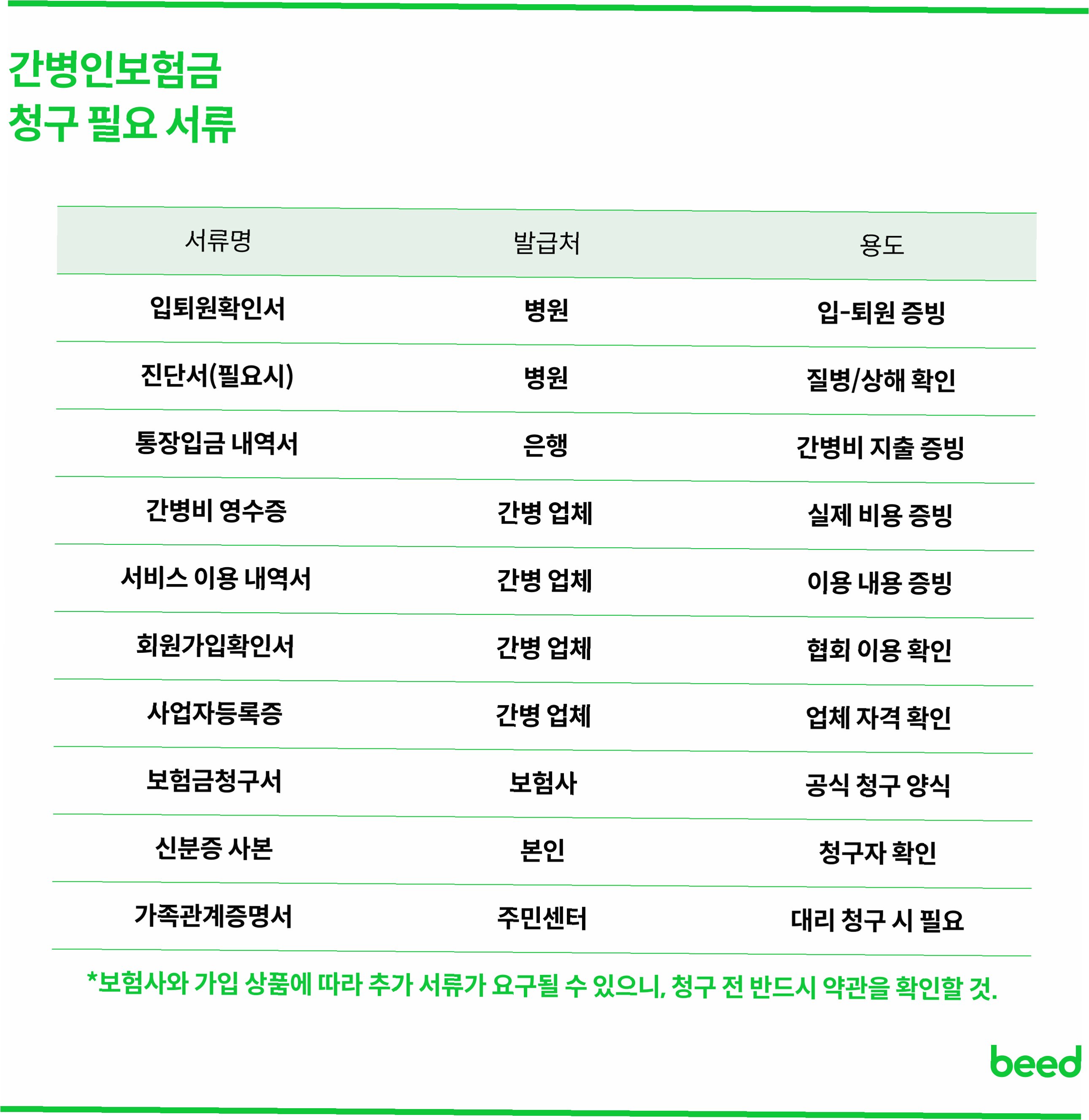 A.일반적으로 진단서, 입원 확인서, 간병인 사용 확인서, 통장 사본 등이 필요합니다. 보험사별로 요구하는 서류가 다를 수 있으므로, 가입한 보험사에 문의하여 정확한 안내를 받는 것이 좋습니다.