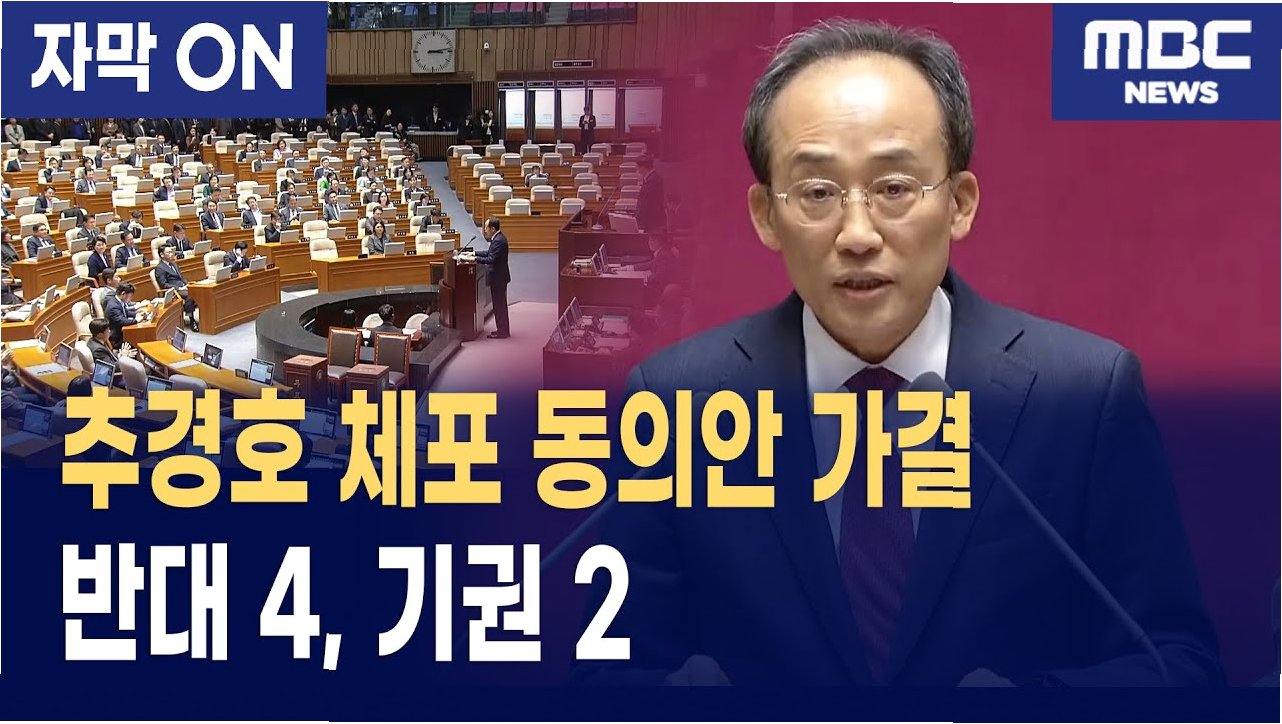 국민의힘 추경호 전 원내대표에 대한 체포동의안이 범여권 주도로 국회를 통과했습니다. 이는 내란 특검이 추 전 원내대표에게 구속 영장을 청구한 지 24일 만에 이루어진 결과입니다. 체포동의안은 국회 본회의에 상정되었으며, 법무부 장관은 혐의가 객관적으로 입증되었다고 설명했습니다. 반면, 추 전 원내대표는 떳떳하게 돌아오겠다며 '공작 수사'라고 반박했습니다. 이 과정에서 국민의힘은 표결 직전 퇴장하여 규탄대회를 진행했지만, 체포동의안은 범여권의 주도로 국회 문턱을 넘었습니다.