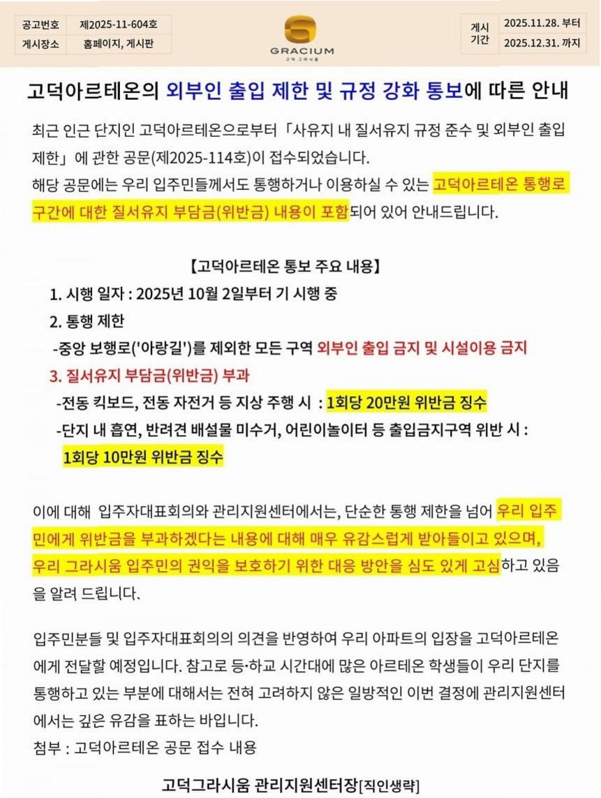 핵심 정리: 고덕 아파트 외부인 통행 제한, 무엇이 문제인가?