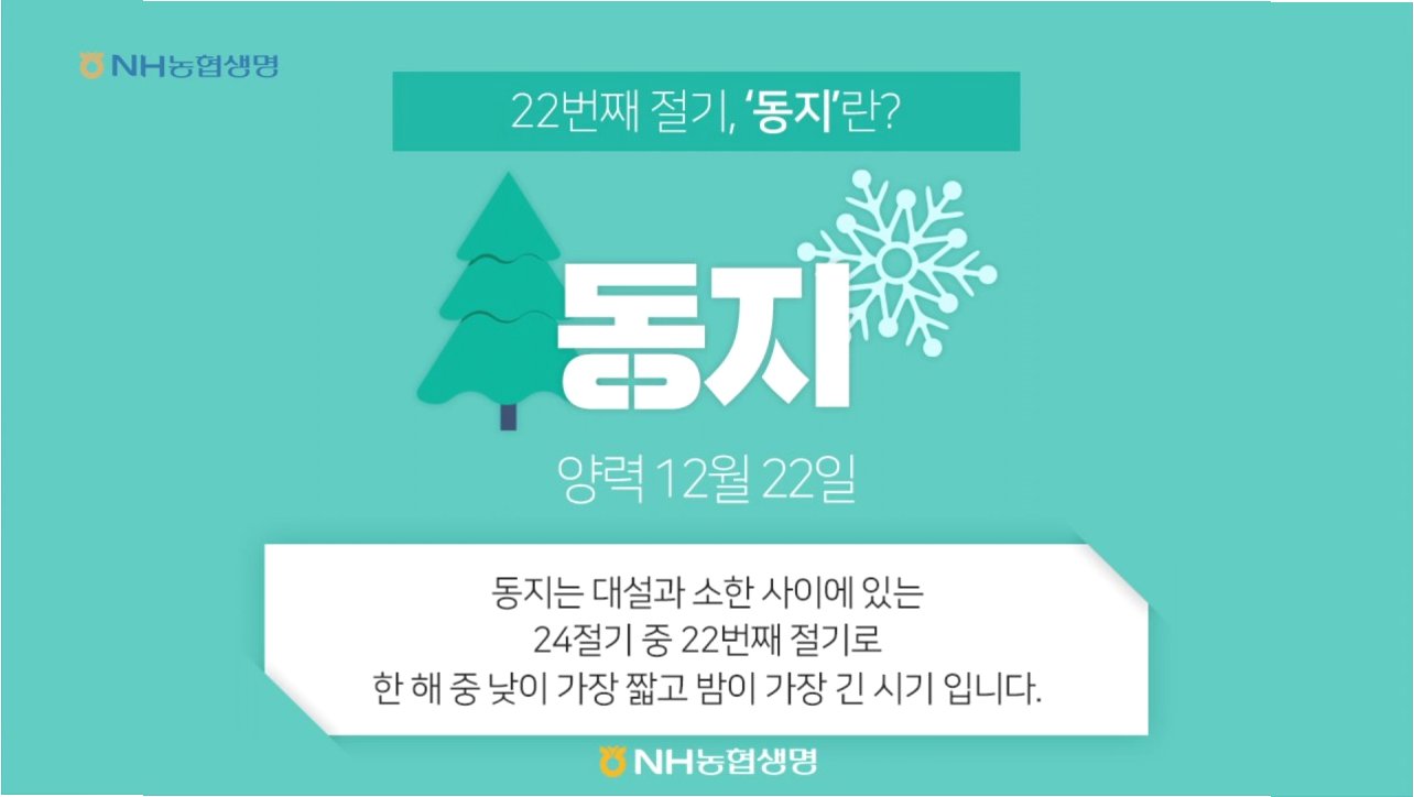 24절기 중 스물두 번째 절기인 동지는 밤이 가장 길고 낮이 가장 짧은 날입니다. 고대에는 동지를 새해의 시작으로 여겨 ‘작은 설’이라 불렀으며, 태양의 부활을 알리는 중요한 기점으로 삼았습니다. 팥죽을 먹는 풍습 외에도 전약, 귤, 냉면 등 다양한 별식을 즐기며 묵은 해를 보내고 새해를 맞이하는 의미를 담았습니다. 동지에 담긴 조상들의 지혜와 풍습을 통해 오늘날에도 이어지는 의미를 되새겨 봅니다.