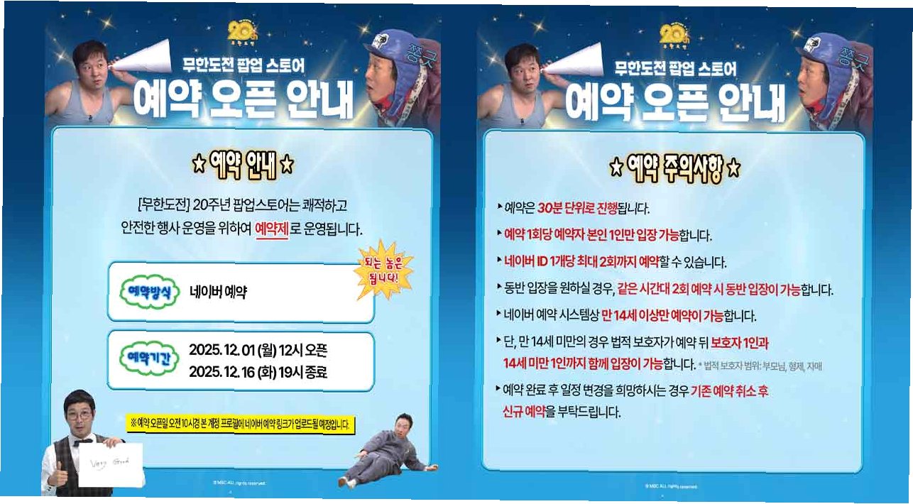 최근 박나래를 둘러싼 논란으로 MBC 예능 프로그램들이 위기를 맞이한 가운데, '무한도전' 팝업스토어 개최 소식은 많은 이들에게 신선한 충격을 안겨주었습니다. '무한도전'은 20년이라는 긴 시간 동안 시청자들의 변함없는 사랑을 받아온 MBC의 대표 예능 프로그램입니다. 이번 팝업스토어는 단순히 굿즈 판매를 넘어, 프로그램의 역사와 가치를 재조명하고 팬들과 소통하는 특별한 공간으로 기획되었습니다. 이는 MBC 예능국이 현재의 위기를 극복하고, 다시 한번 예능 강국으로서의 입지를 다지려는 의지를 보여주는 중요한 시도로 해석됩니다.