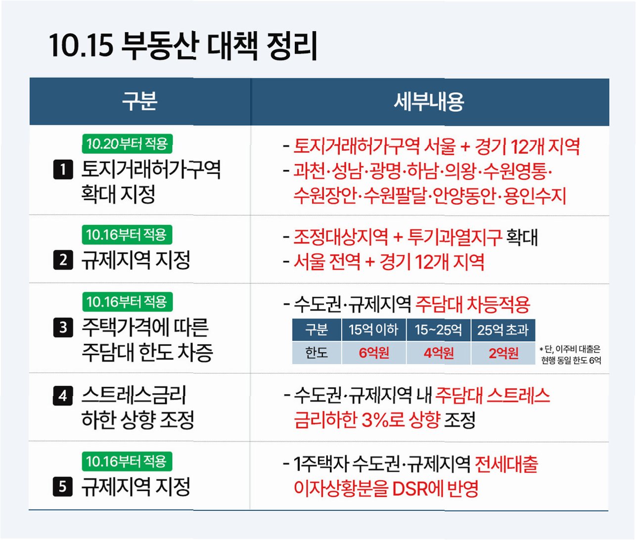 A.정부는 시장 과열을 막기 위해 지속적으로 규제 정책을 발표해왔습니다. 앞으로도 시장 상황에 따라 추가 규제가 시행될 가능성이 있으며, 이러한 변수를 염두에 두고 투자 계획을 세워야 합니다.