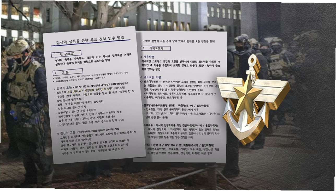A.문건에는 나체 방치, 물고문, 가족에 대한 위해 협박 등의 고문 방법과 벤조디아제핀, 프로포폴, 케타민 등 마취제를 사용해 자백을 유도하는 내용이 담겨 있습니다.