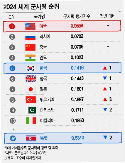 핵심만 콕! 한국, 비핵 강국으로서 세계 5위 군사력 유지