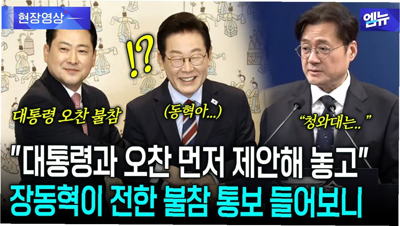 오늘 예정되었던 이재명 대통령과 정청래 민주당 대표의 오찬 회동이 장동혁 국민의힘 대표의 불참 통보로 인해 최종 무산되었습니다. 장 대표는 최고위원들의 재고 요청을 받고 논의 끝에 불참을 결정했다고 밝혔습니다. 이는 당초 오찬 제안을 받고 승낙했던 것과는 다른 결정으로, 정국에 대한 깊은 아쉬움을 남겼습니다.