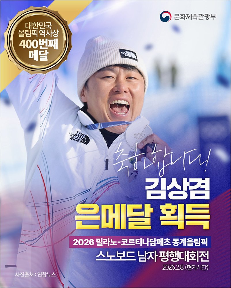 대한민국 올림픽 400번째 메달의 주인공인 스노보드 알파인 김상겸 선수가 JTBC '톡파원 25시'에 출연합니다. 귀국 이틀 만에 '톡파원 25시'를 찾은 김상겸 선수는 실물 올림픽 은메달과 함께 등장하며 메달리스트의 위엄을 뽐냈습니다. 2026 밀라노 코르티나 동계올림픽 은메달의 영광을 함께한 장비들도 소개했는데, 특히 이번 올림픽을 위해 특별 맞춤 제작한 보드는 수백만 원의 비용이 들었다고 밝혔습니다.