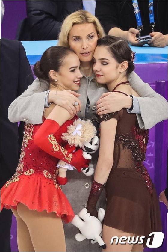 A.러시아 선수들의 도핑 문제와 국제 사회의 제재로 인해 러시아 국적으로는 올림픽 참가가 어렵거나 논란의 소지가 있기 때문에, 다른 국가의 선수 코치로 참여하여 대회에 모습을 드러낸 것으로 보입니다.