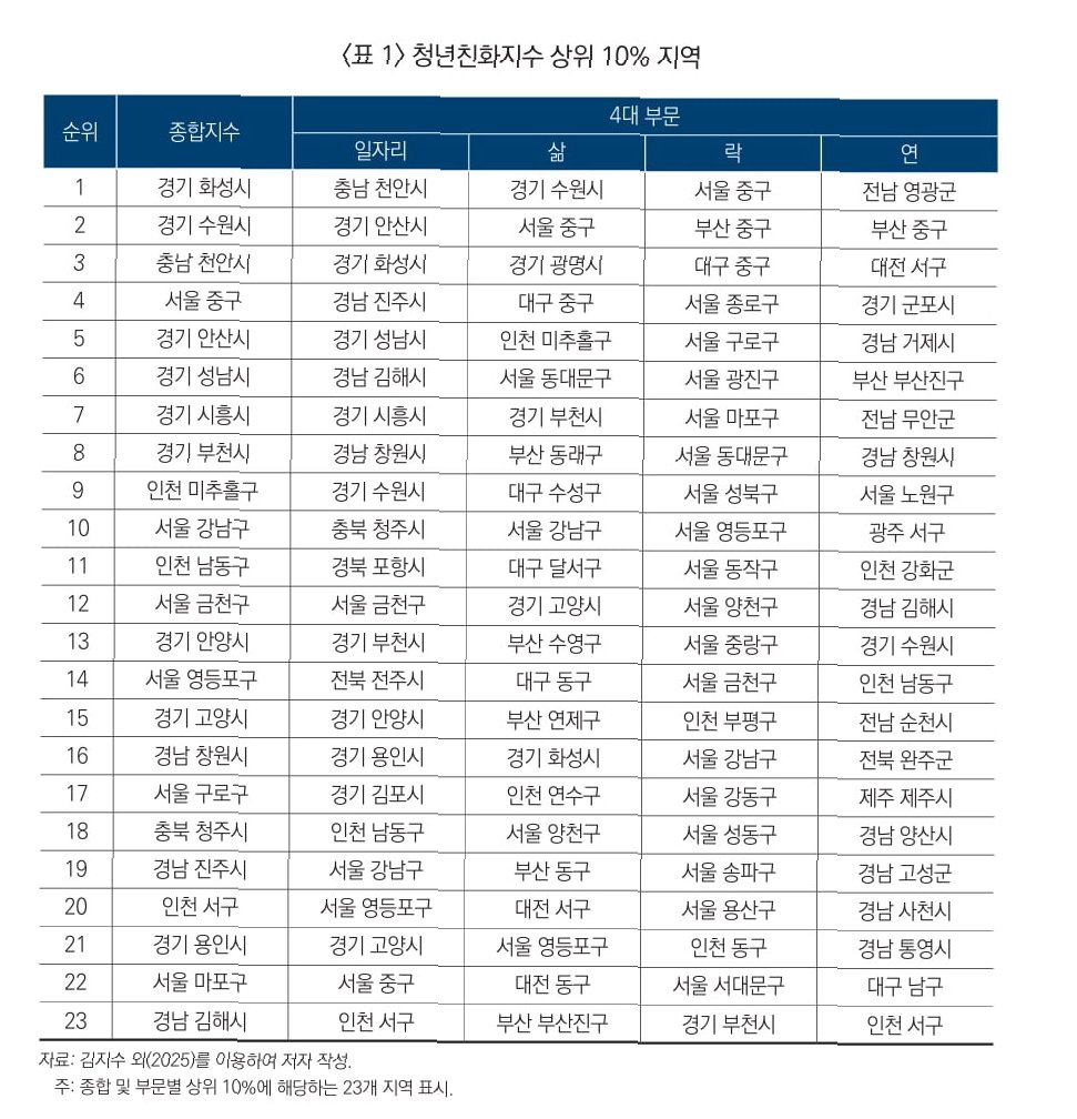 청년친화지수, 수도권 집중 현상 뚜렷