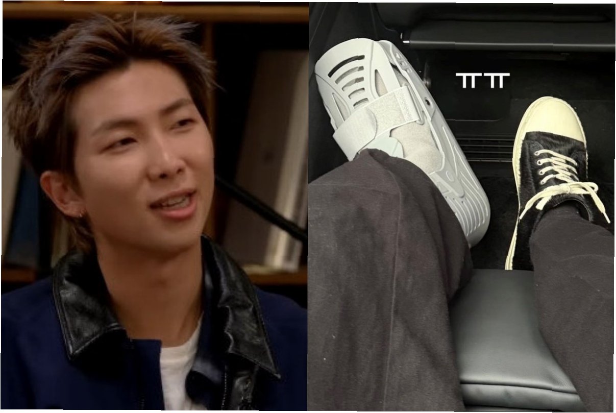 RM, 뉴욕행 강행군 속 목발 투혼…팬들 '건강' 염려 증폭