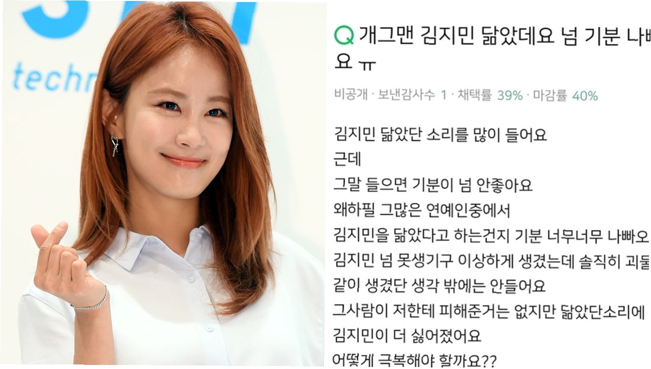 A.김지민은 카페에 올라온 자신의 사진이 성형 전 모습이라며 비난하는 악플 때문에 속상했다고 밝혔습니다. 하지만 해당 사진은 성형 후 사진이었기에 더욱 억울하고 화가 났다고 토로했습니다.